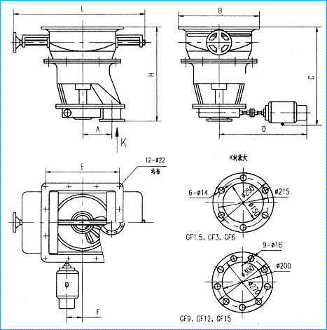 | GF型葉輪給粉機是一種定量給粉設備。給粉量的調節是靠改變電磁調速異步電動機的轉數來達到的。變速系統是由一極蝸輪與蝸桿付構成的。 |